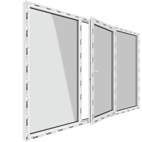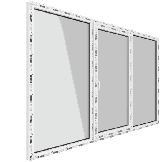 Окно 2150 х 1410 мм, REHAU BLITZ (Фурнитура UPT), трехстворчатое, поворотно-откидное центральное, теплопакет DS Neutral