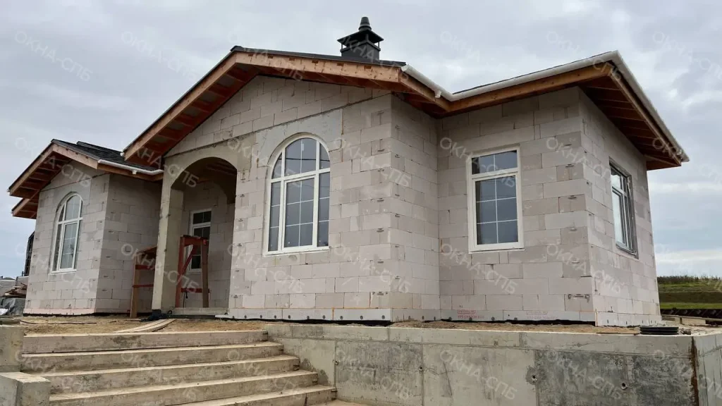 Остекление коттеджа в поселке Хязельки Когда смотришь на этот коттедж, понимаешь, что в этом доме будет много света. Все благодаря профилю Rehau Delight-Design. Он тонкий, почти незаметный, и пропускает максимум дневного освещения внутрь. Окна оборудованы фурнитурой Roto NX и системой Roto Patio PS Air Com с возможностью штульпового открывания и комфортного проветривания. В жару они не перегреваются, а зимой держат тепло за счёт двухкамерных мультифункциональных стеклопакетов. Профиль заламинирован плёнкой Continental – белой, с текстурой под дерево, одинаково красиво выглядит и снаружи, и внутри. Ручки Rehau Medea Plus в бронзовом цвете добавляют уют и немного классики, а декоративные шпросы 18 мм поддерживают архитектурный ритм дома — делают фасад завершённым и выразительным. Общая площадь остекления — 42,57 м². За счёт этого дом буквально наполняется светом: через панорамные окна на террасу и арочные проёмы в гостиной. Результат — уютный, тёплый и очень живой дом, где каждая деталь работает на ощущение простора и комфорта.